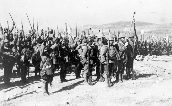 Японские войска перед наступлением на город Нанкин в 1937 году во время китайско-японской войны (Фото: AP/TASS)